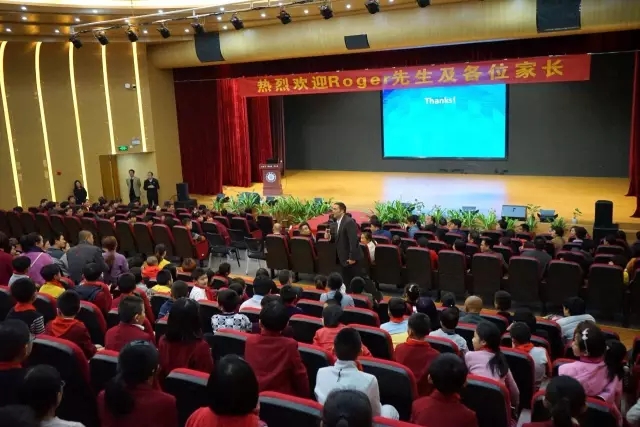 5月7日上午10:30,Roger Shinkle先生和各位校长在北大培文外国语学校未名楼三楼报告厅为广大家长进行演讲,气氛十分热烈。